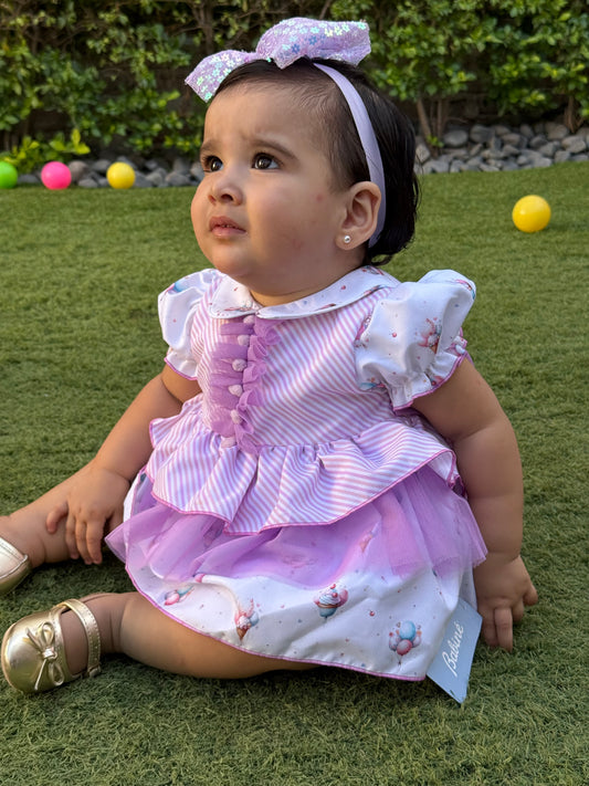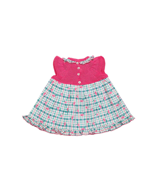 Vestido corto flores fucsia/limones con cubrecalzón para bebe