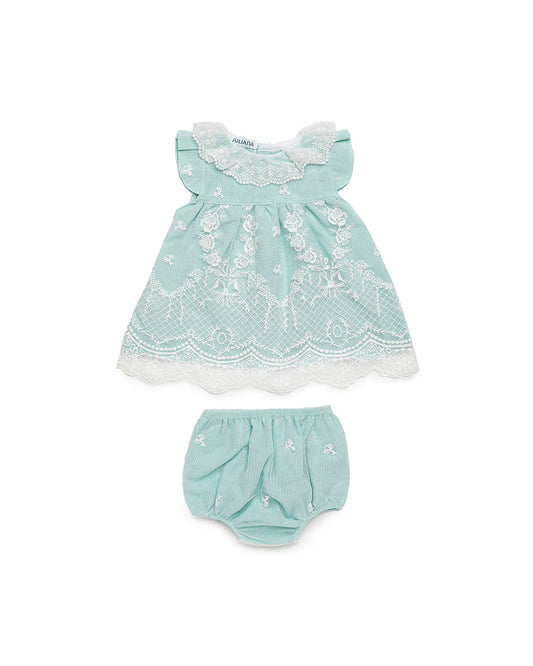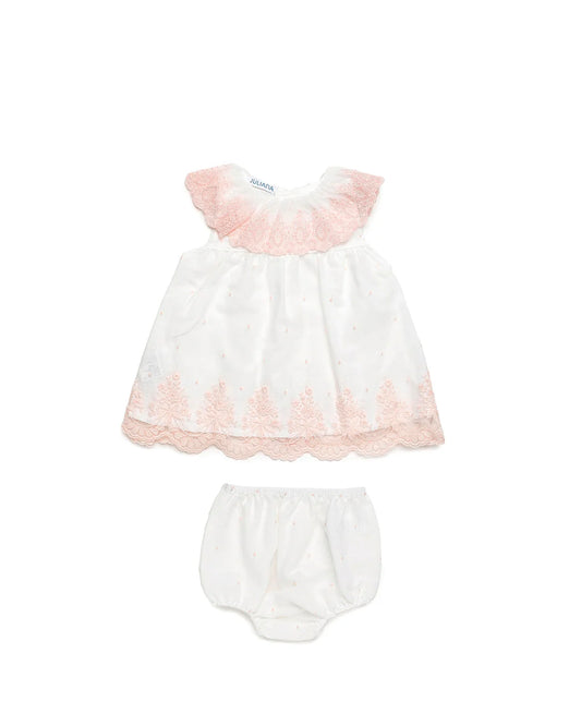 Vestido de popelín + cubrepañal con volantes para recién nacida, rosa