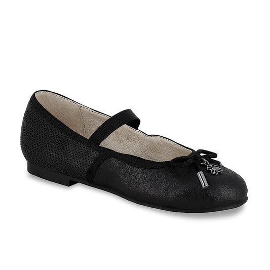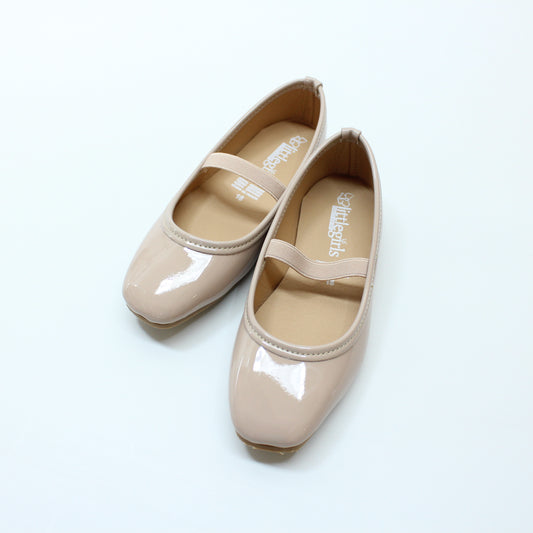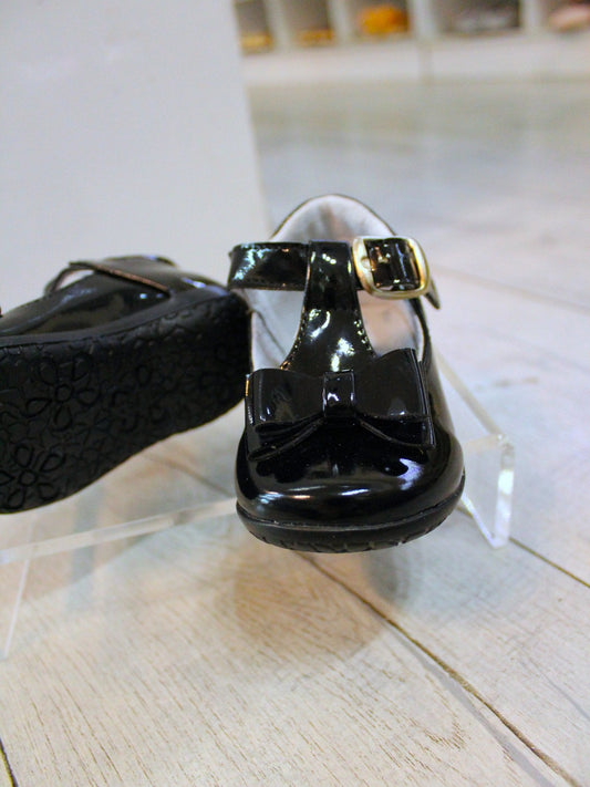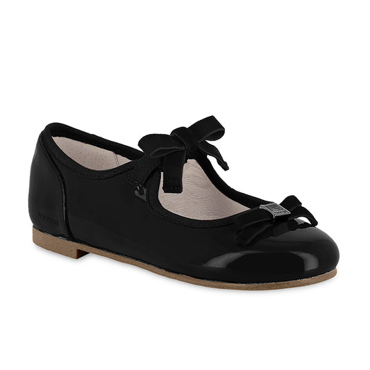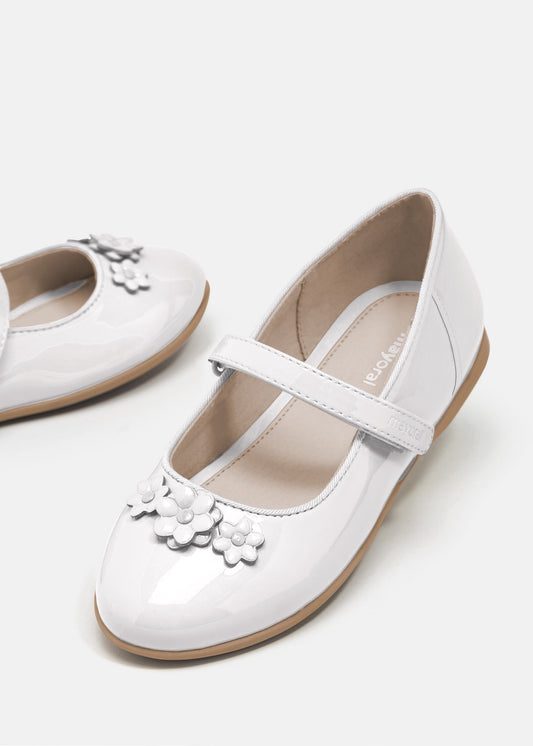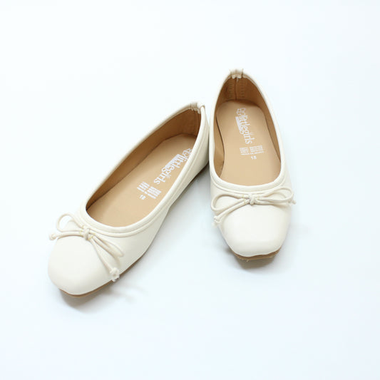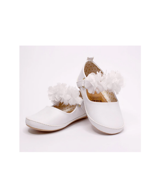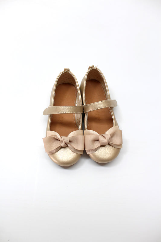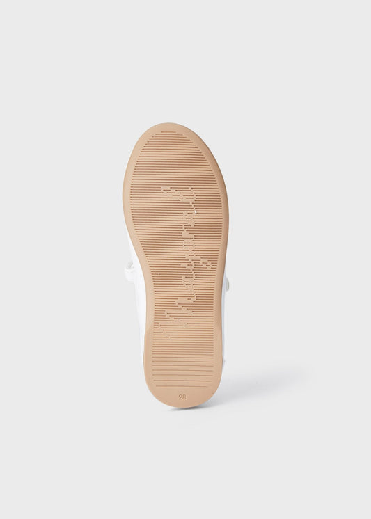 Zapato crema nacarado con moño doble y cierre con hebilla