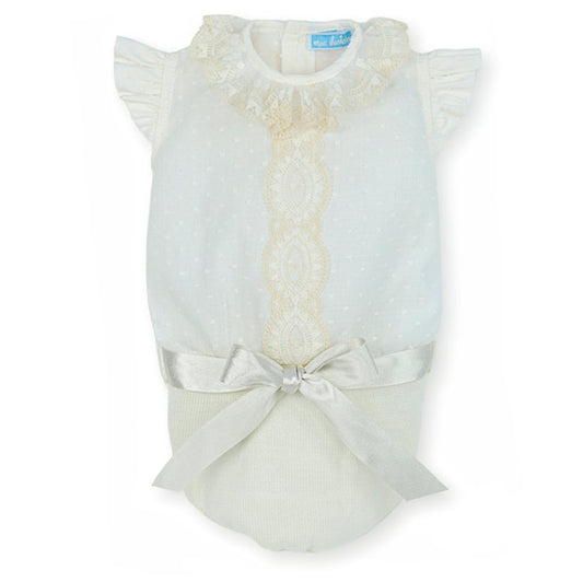 pelele corto crudo, talle punto roto, encaje en la parte de abajo