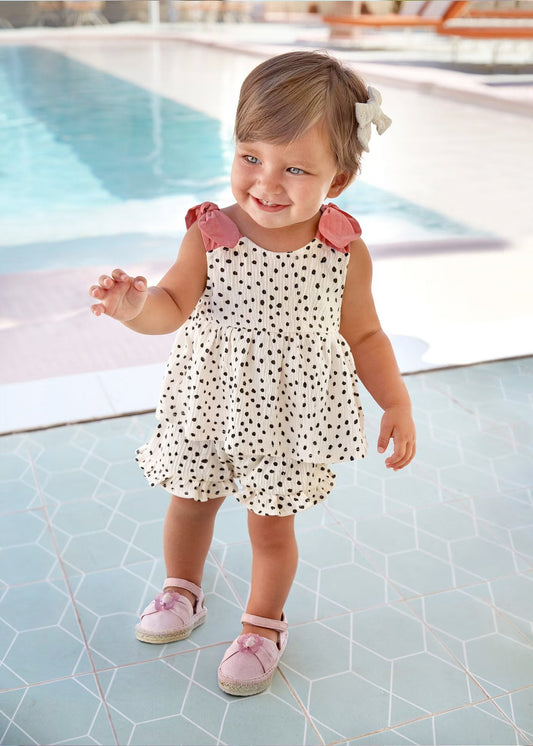 conjunto 2 piezas bambula puntos moños rosas en los hombros
