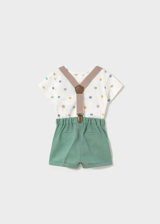 Conjunto short tirantes, brocoli y camisa cuello. recién nacido