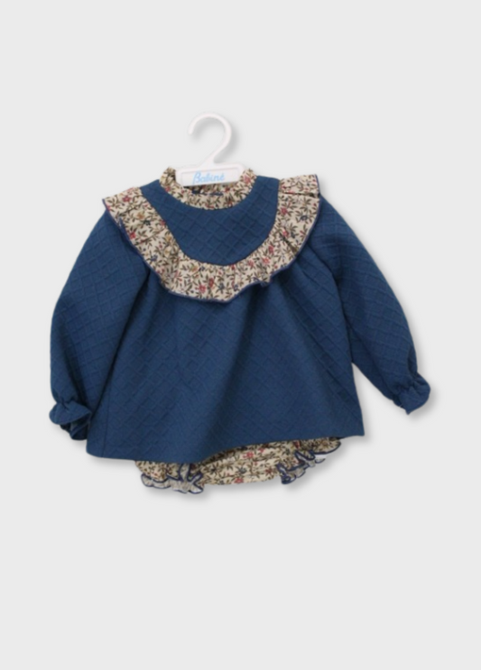 vestido lana azul, con falda prints corazones