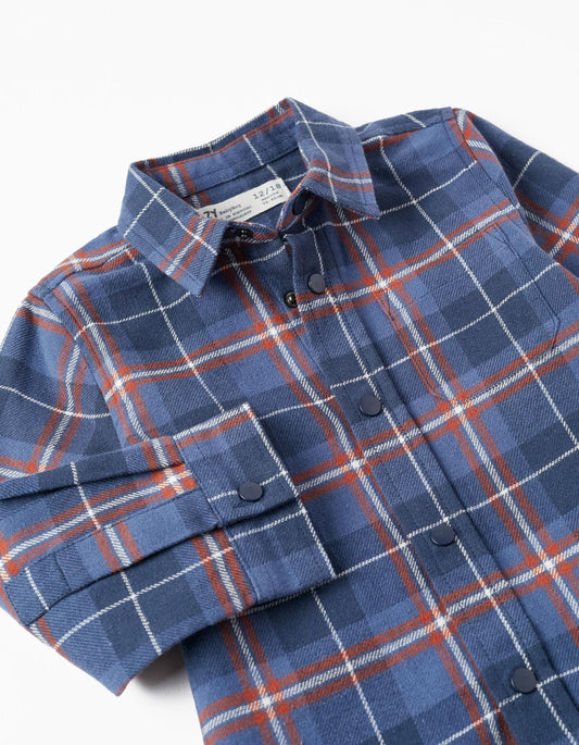 camisa azul a cuadros marino/ chedron, para bebé