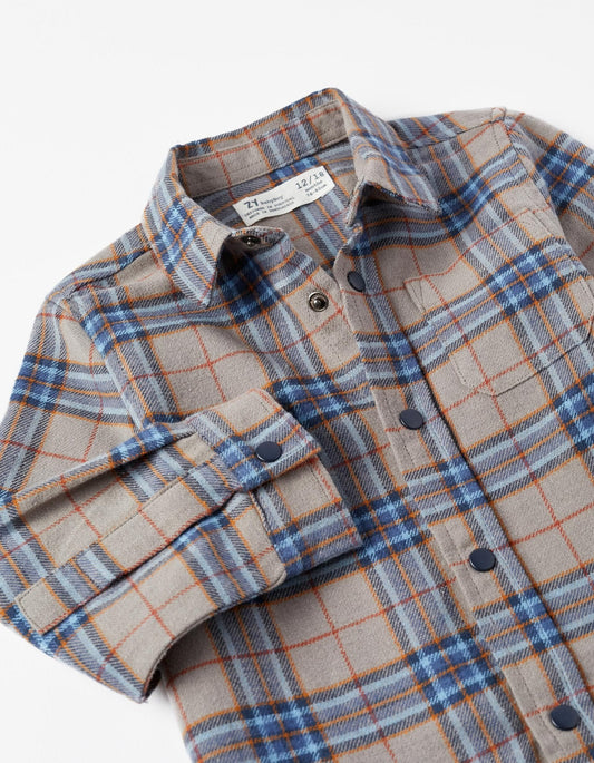 camisa azul a cuadros gris con azul, para bebé