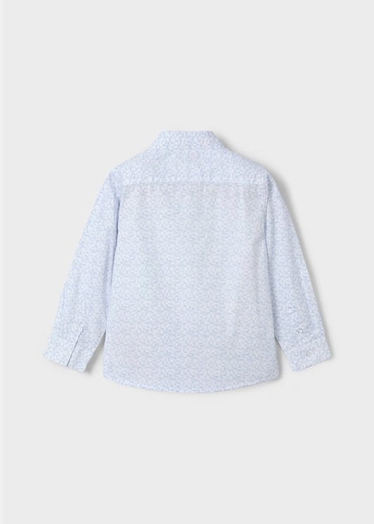 Camisa manga larga estampada blanco y azul. niño