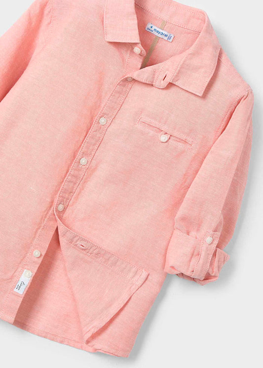 Camisa manga larga con lino, rosa teja. niño