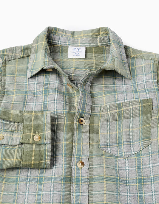 camisa franela a cuadros verde/gris