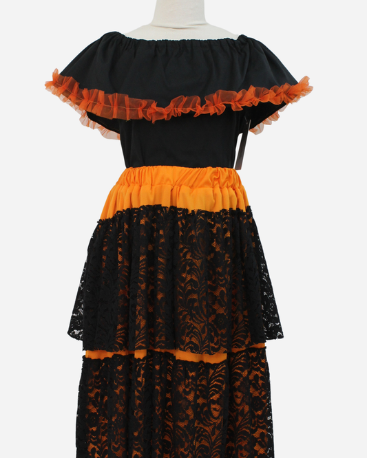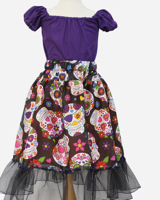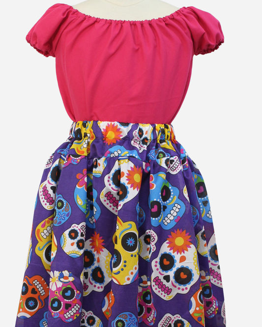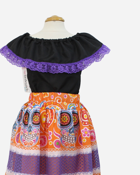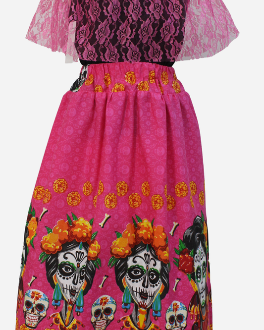 SET CATRINA BLUSA MANGA GLOBO Y FALDA MOTIVOS DIA DE MUERTOS