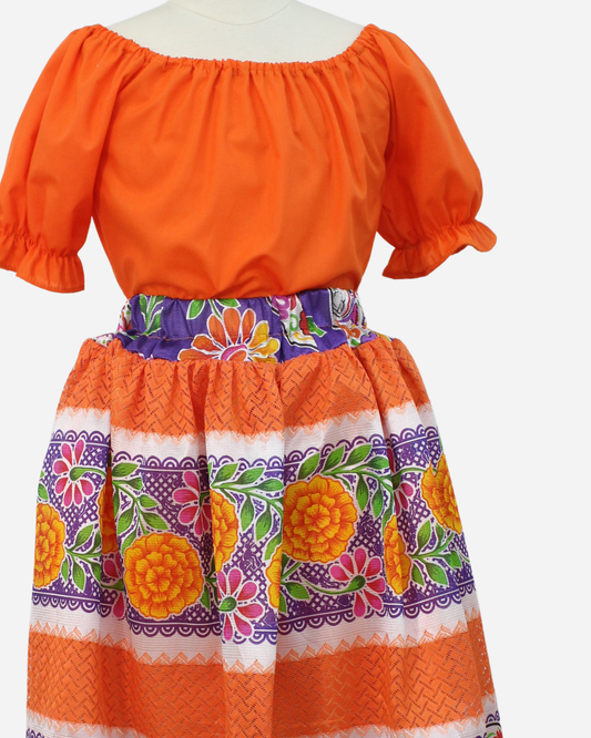 SET CATRINA BLUSA CAMPESINA Y FALDA MOTIVOS DIA DE MUERTOS