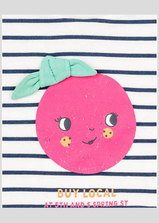 set suéter ligero a rayas print naranja rosa con leggins azul marino, marca losan
