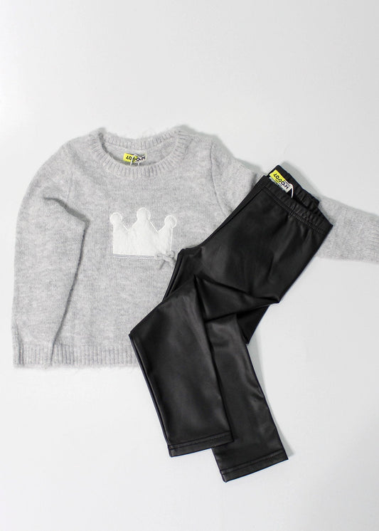 set jersey gris corona y pantalón vinipiel negro, marca losan