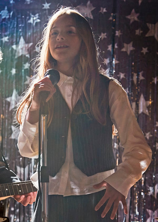 set blusa y falda de terciopelo rosa con destellos plata tornasol