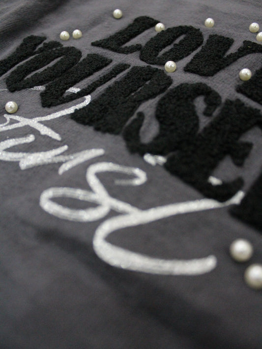 set blusa milk 3 corazones, falda de flores granate, mayoral