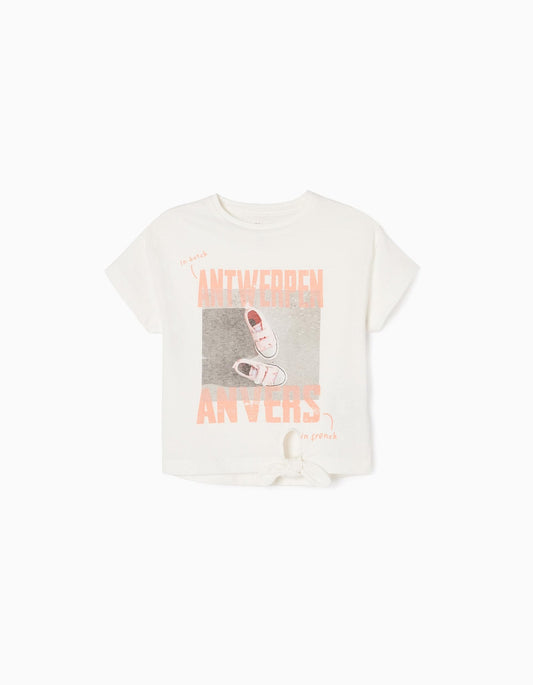 Conjunto blusa blanca, short azul, mayoral