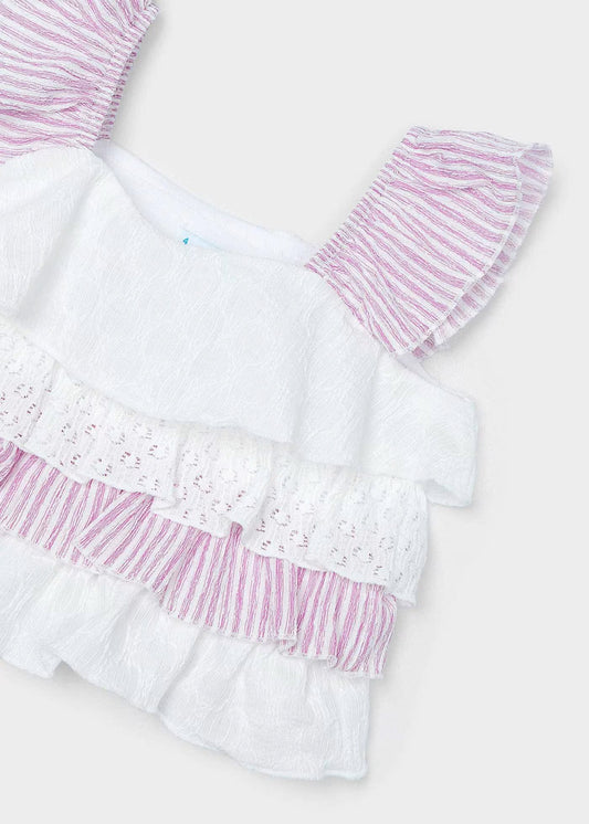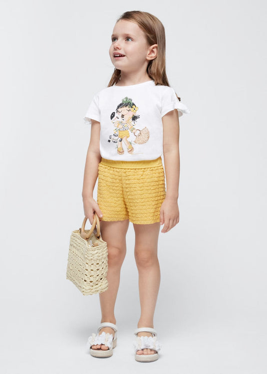 Conjunto blusa flores short patoles al frente, mayoral