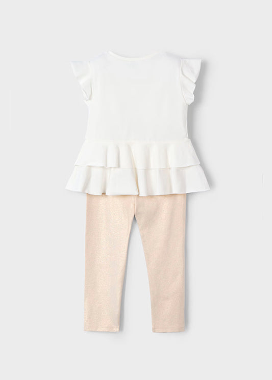 Conjunto legging tobillero y playera flores niña