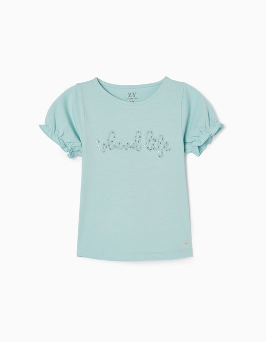 set camiseta ligth blue y short falda flores