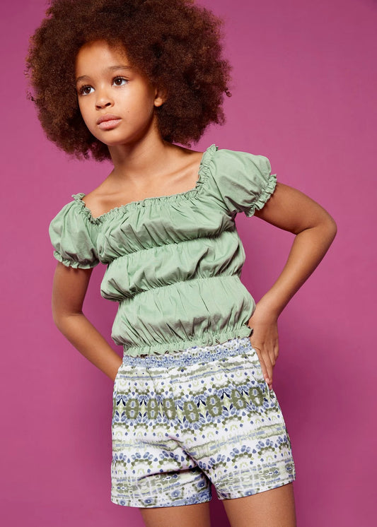 conjunto 2 piezas,verde menta. blusa smoke y short