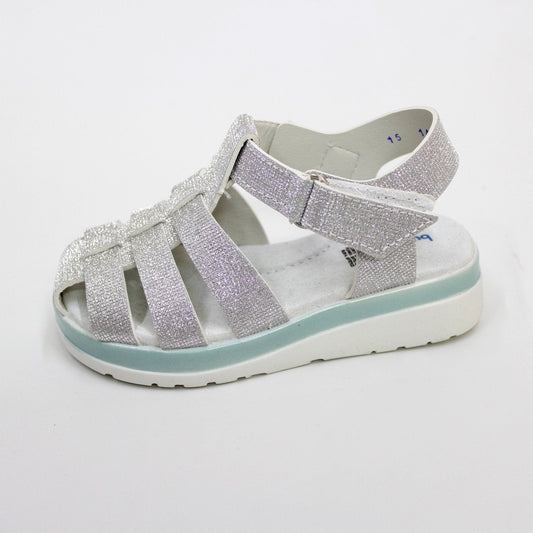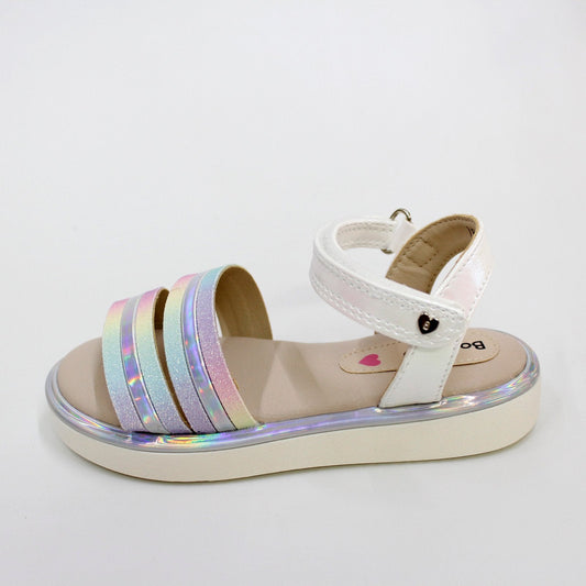 huarache lineas plata tornasol, cierre de velcro