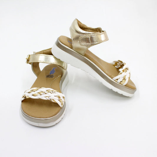huarache trenza oro, cierre de velcro