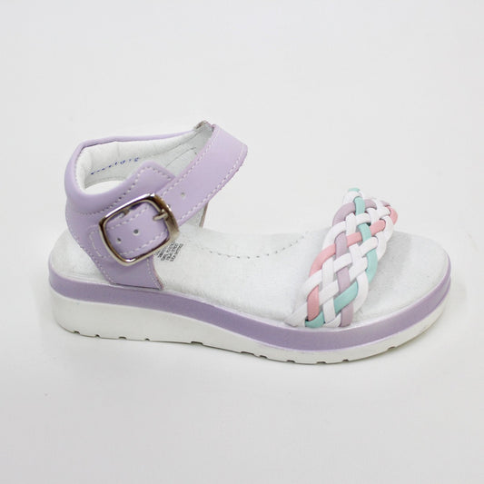 huarache tonos pastel, color lila, cierre con hebilla