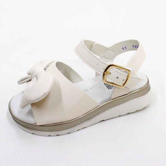 huarachito con moño color hueso, hebilla dorada