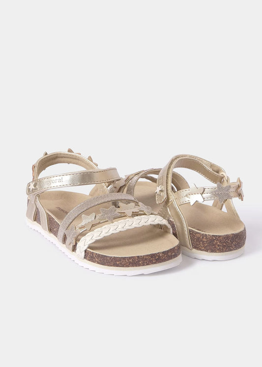 sandalia estrellas oro y suela tipo corcho