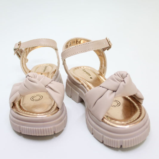 huarachito con moño color nude, hebilla dorada