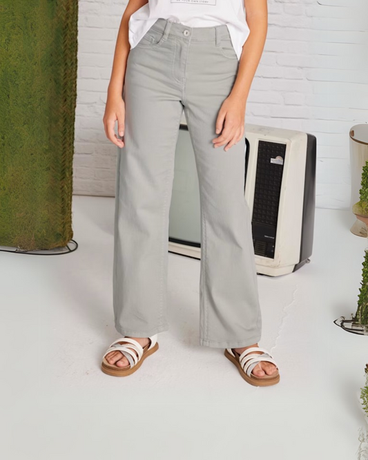 Pantalón ancho sarga, denim tono cenemento