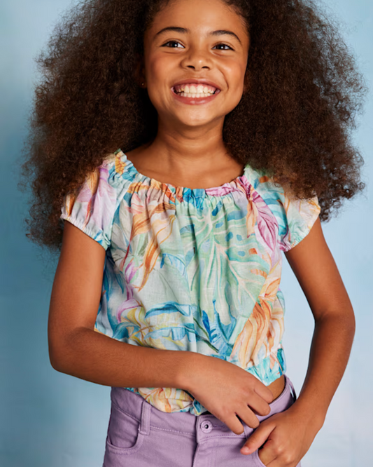 conjunto blusa flores short lila