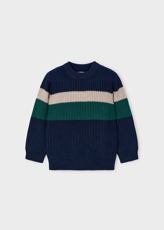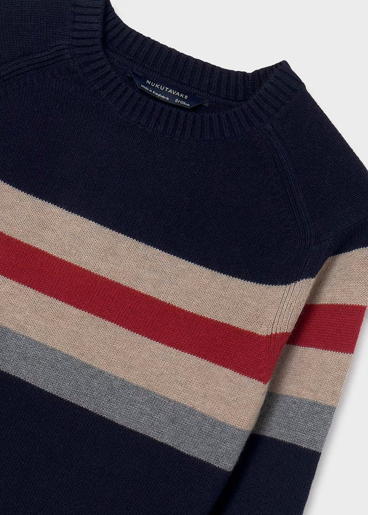 suéter a rayas marino, cuello redondo