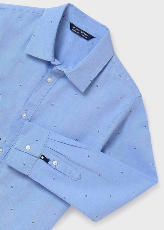 camisa azul celeste manga larga, mini triangulos