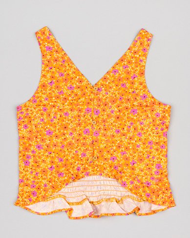 set 2 piezas blusa flores naranjas y pantalón campana color crudo
