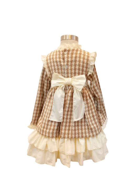 vestido a cuadros rojo y azul, peto blanco, marca babine