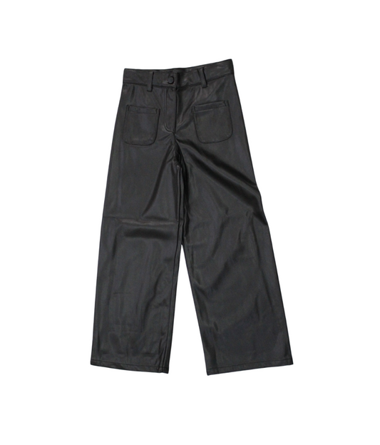 pantalón pierna ancha, bolsas al frente mezclilla negro deslavado