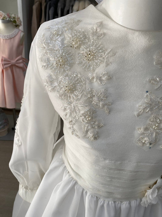 vestido primera comunión color perla con manga campana tres cuartos, talla 10