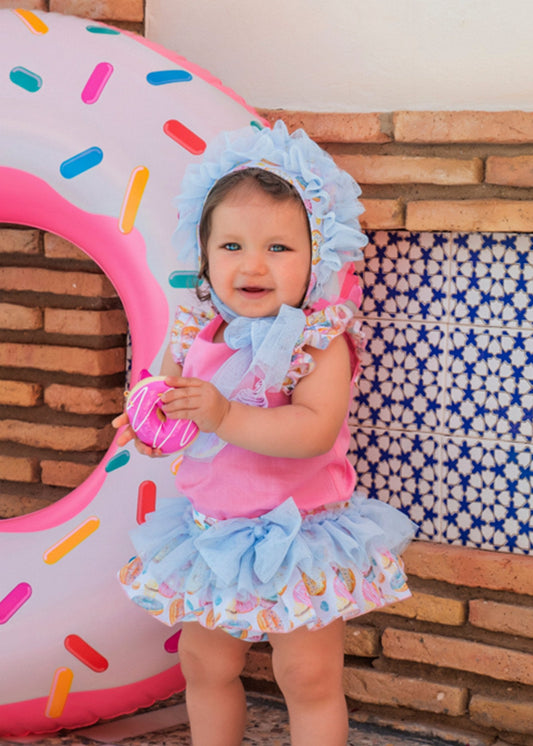 vestido babine colección cerezas, talla 9 y 12 meses incluyen capota