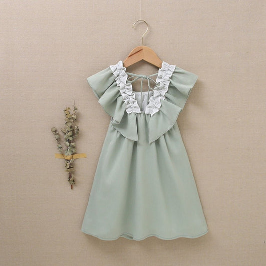 vestido de niña verde olivo con volantes en contraste
