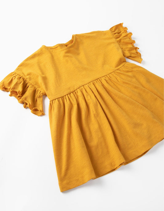 Vestido de volantes y manga corta de suave tul en tablitas