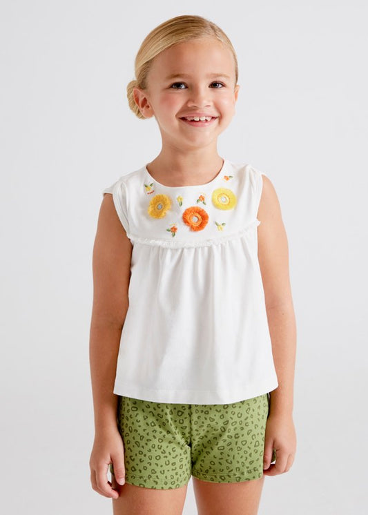 conjunto de short oliva y blusa bordada mayoral
