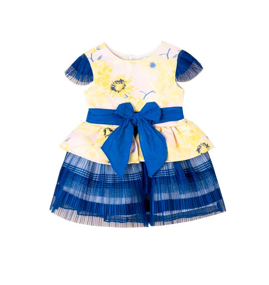 Vestido de niña estampado en color azul petróleo