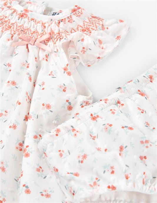 Vestido bebe c/ cubre calzón flores naranjas y rosas