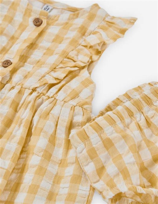 conjunto vestido flores amarilla co cubre calzón, cuadros