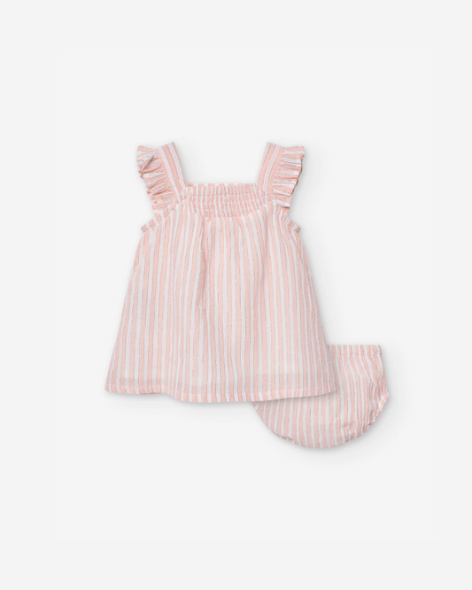 Vestido + Cubrepañal Rayas y Bordados para Recién Nacida, Blanco/Rosa
