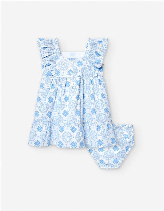 Vestido de Algodon Estampado. Flores Amarillo, Verde y Azul