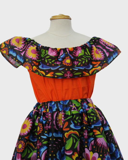 Set Patrio Falda con Elementos Estilo Mexicana y Blusa Campesina color Naranja