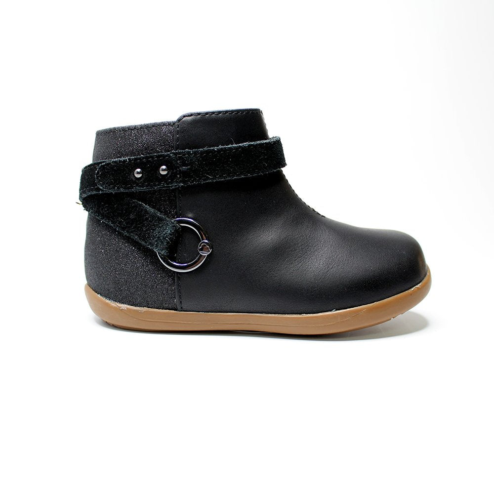 botín color negro, cintito negro con detalles de aros y remaches plateados