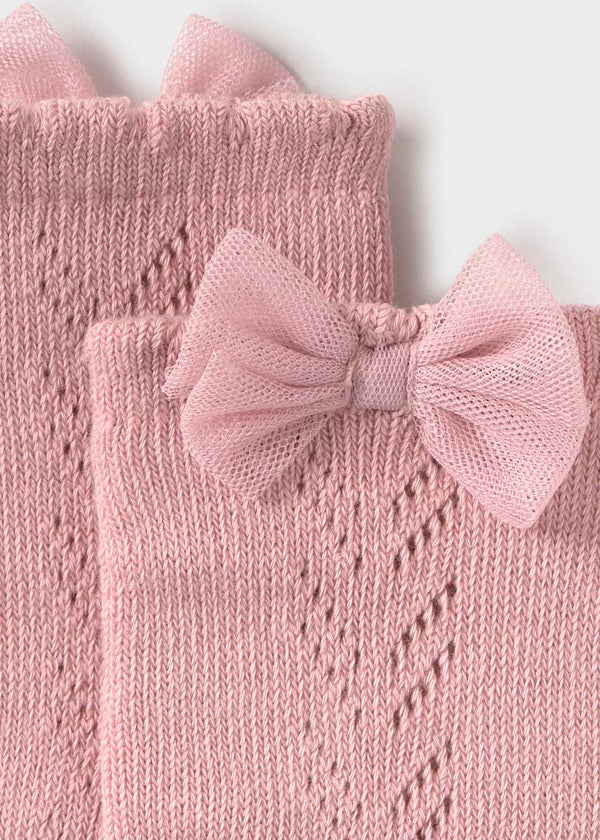 Práctico set de dos pares de calcetines para bebé. Elementos de adorno: moño.