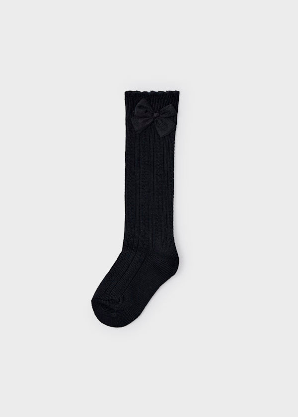 Calcetines largos para niña. Un accesorio perfecto para completar su look, dándole un toque diferente. Elementos de adorno: lazo, detalles de canalé.